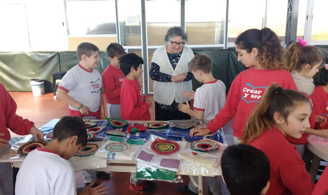 Con gran alegría compartimos aqui fotos de los diferentes momentos que se fueron desarrollando en nivel primario: desde que comenzó el proceso con el tejido de cuadraditos, las colaboración tan comprometida de las familias tejedoras, la visita de las Damas de Rosa del Hospital de Morón, la participación de todos los que querían tejer en el Stand del Hospital durante el Festival Solidario.